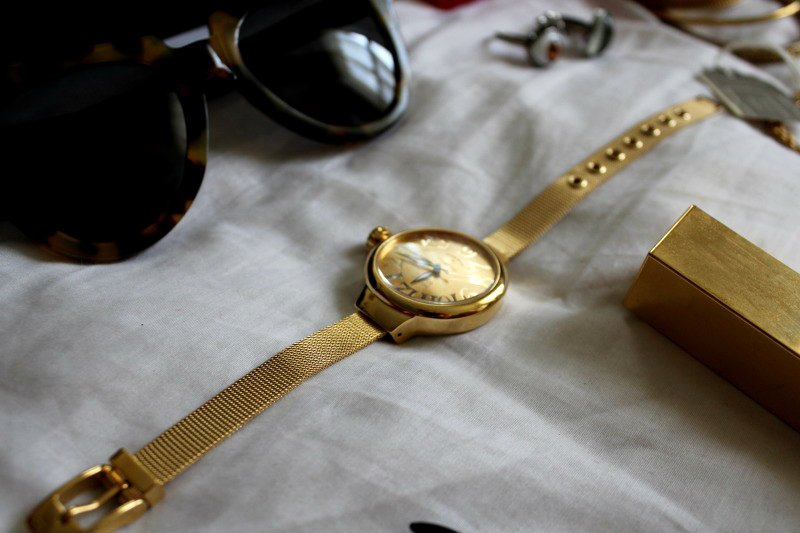 13- Golden Watch: I don’t often wear watches but I wanted a chic gold one to mix into a cluster of bangles to join my “arm party”. Next on the list, an oversized boyfriend watch! You can get this Glam Rock Watch here!