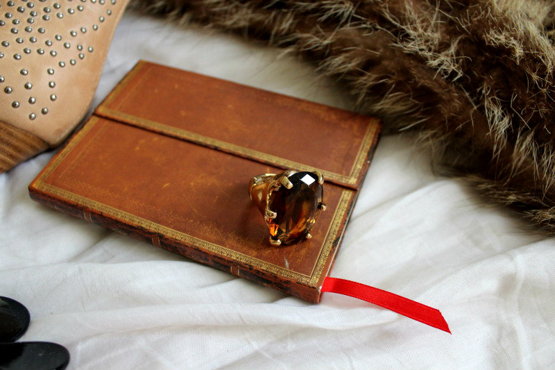 7 & 8- The Golden Ring & Notebook: As much as I love all things tech, nothing beats having classic paper and pen with you at all time for when inspiration hits. I got this golden beauty at Beacons Closet.     To compliment the book, I love wearing this same color tone romantic style ring by Marlyn Schiff. You can get it here.